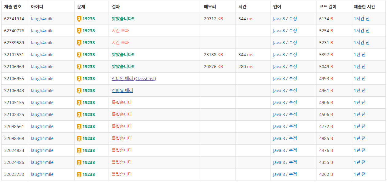 1년 전에 풀때는 "틀렸습니다" 이지만 이번에는 "시간초과"가 났다.